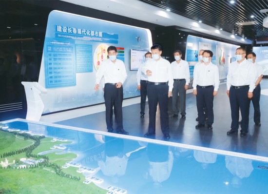 2020年7月22日至24日,中共中央总书记、国家主席、中央军委主席总书记在吉林省考察。这是7月23日下午,总书记考察长春新区规划展览馆,了解新区规划建设情况。 新华社记者 王晔/摄